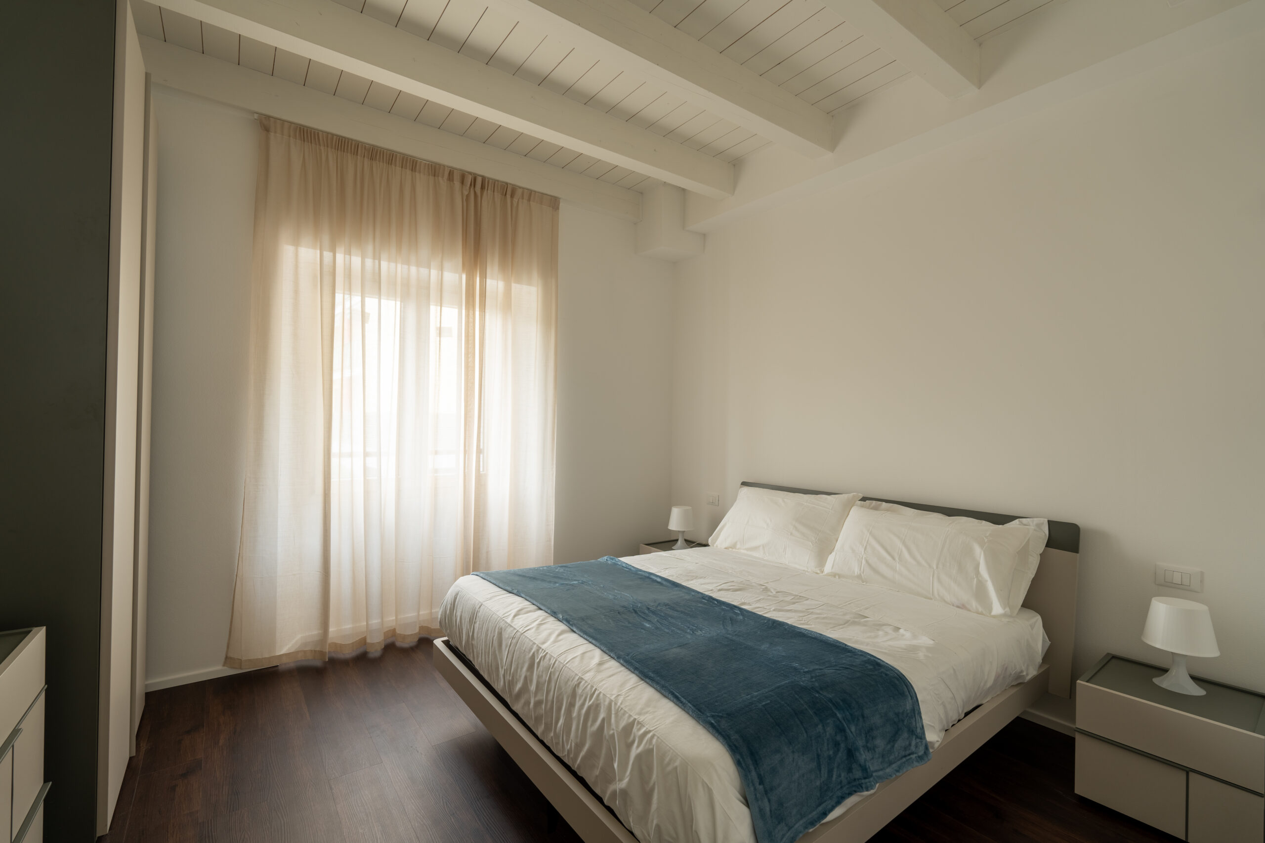 La zona notte comprende due camere da letto. Dispone di un secondo bagno al piano rialzato, completo di ampia doccia, garantendo comfort e praticità.