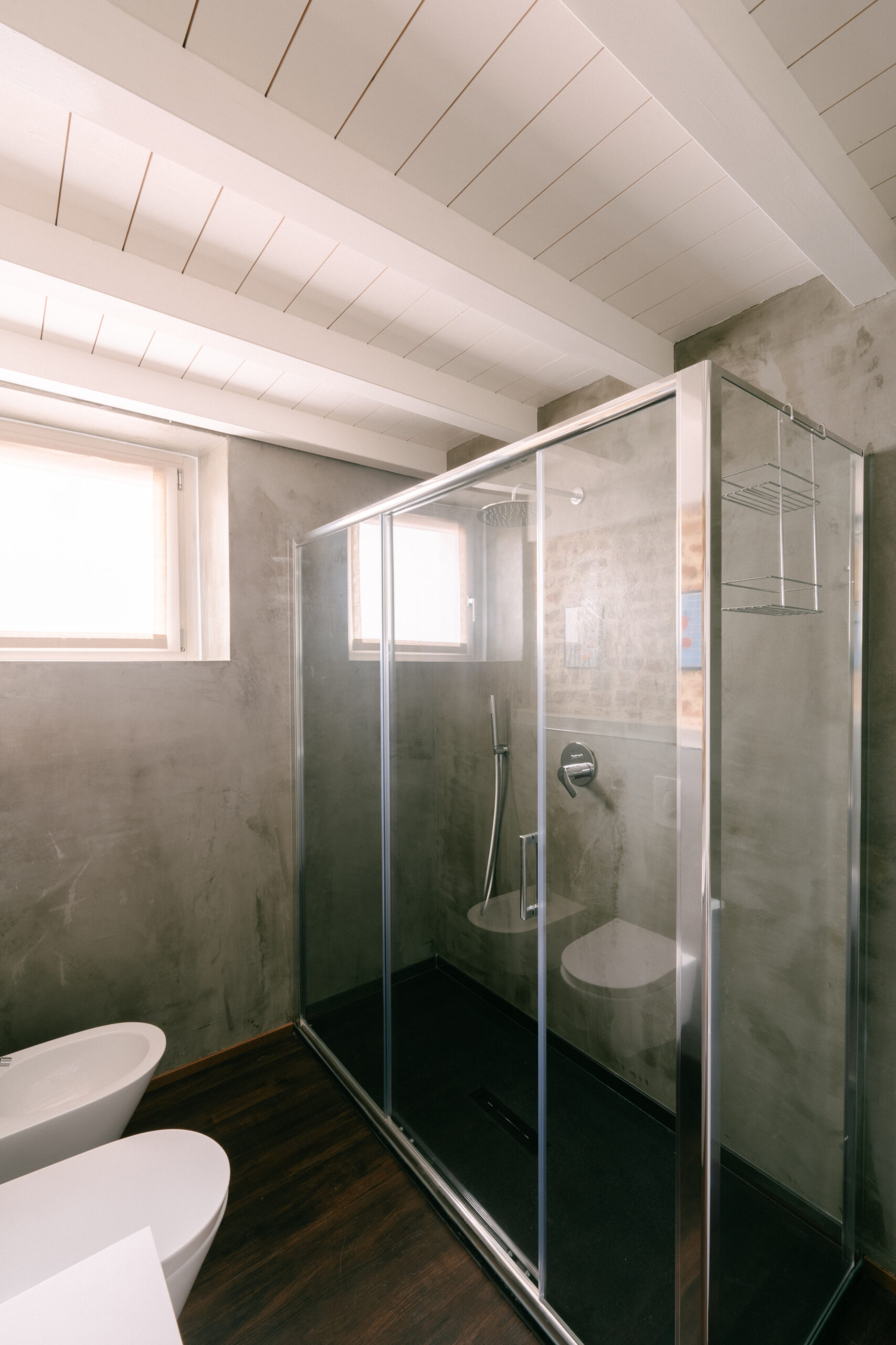 Il bagno moderno ha una grande doccia e una lavasciuga, perfetta per soggiorni di ogni durata.