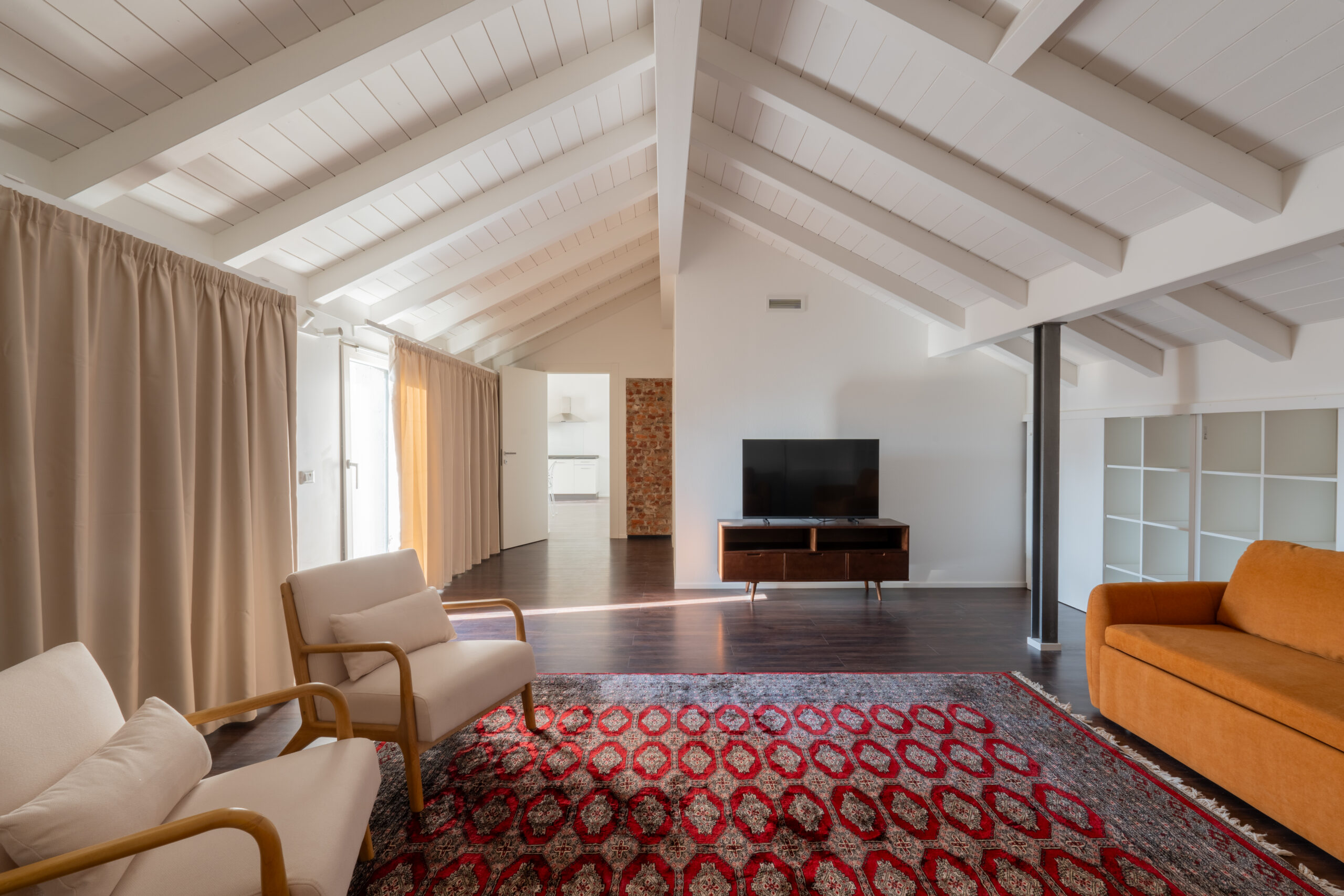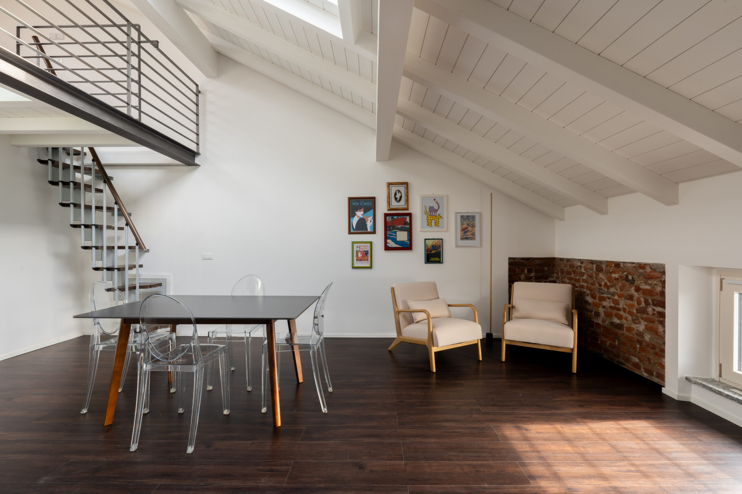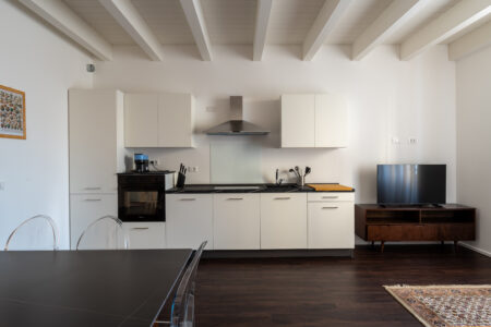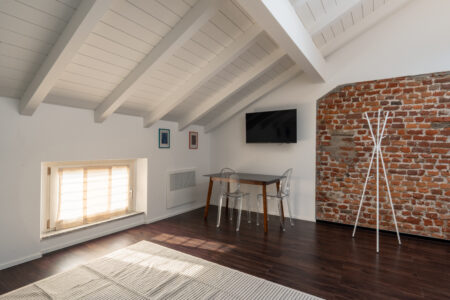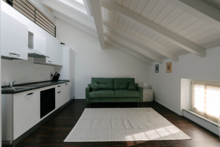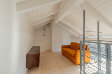 Eleganti bilocali mansardati caratterizzati da un suggestivo soppalco in legno e raffinate travi a vista che conferiscono carattere e personalità agli ambienti. La camera da letto è spaziosa e luminosa grazie alle finestre Velux a comando elettrico.